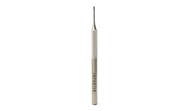 通常であればほとんど同じ厚みで処理されることの多い、フロントのチタン板材にも徹底的にこだわりました。JN-1001SPのフロントには、通常はあまり使用しない規格外の厚さ(4.0mm厚)の板状のチタンを使用しています。センター付近に厚みを持たせ、サイドは薄く仕上げることで上質感を高めました。