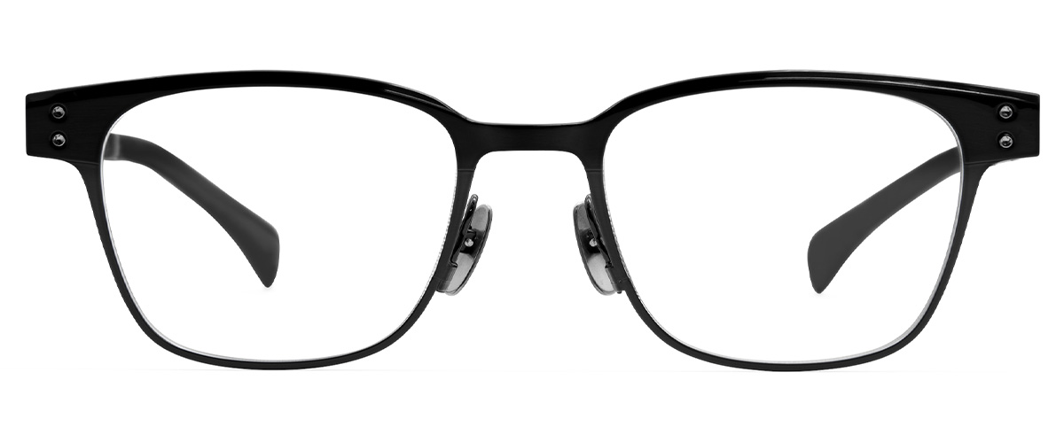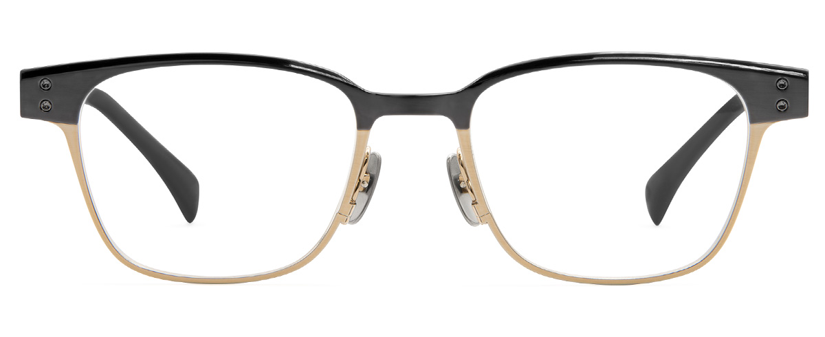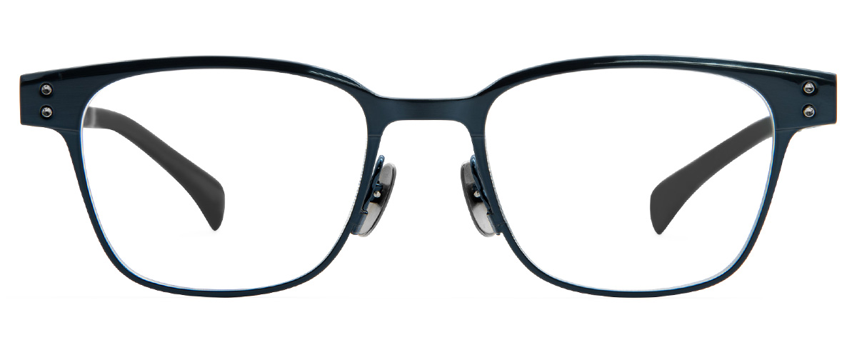 究極の軽さと立体美の融合が織りなすJAPONISMの新たな地平線。第一弾は軽さと立体感を併せ持ったウェリントンシェイプ。薄く圧延したチタン板材をさらにプレス加工し、さらにブロー部分には段差をつけた斜めの面カットを施すことで奥行きと立体感を実現しました。フロントの繊細な軽やかさに対し、ヨロイからテンプルにかけては重厚感を持たせることで独自の美しいバランスを表現しました。フロントとヨロイのジョイント部分は「くびれ」を設けることでフィッティング調整のしやすさを向上させ、一人ひとりのお顔に合わせた最適な掛け心地を提案します。新しく開発されたエラストマー製のオリジナルモダンは、ゴムのような弾性とプラスチックのような高密度を併せ持つエラストマー素材を採用。長時間の装用でも耳が痛くなりにくい形を追求し快適性を最大限に高めます。
